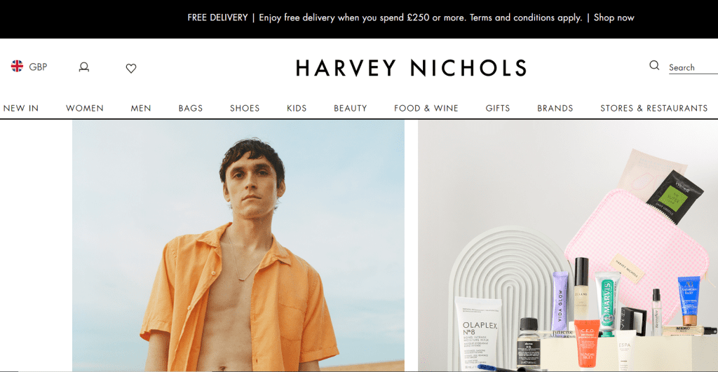 Introduction to Harvey Nichols website