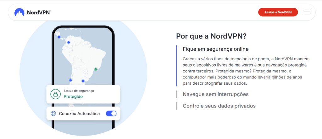 Com esses recursos avançados, o NordVPN protege efetivamente sua vida digital contra diversas ameaças cibernéticas, mantendo uma experiência online fluida.