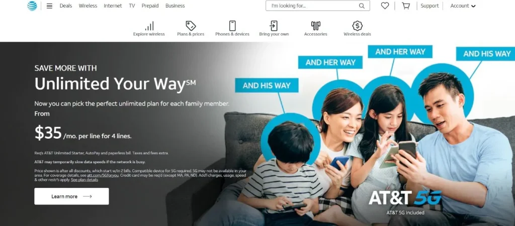 Unlimited plans start from $25-30/month in some cases, although you’ll need to pay at least $35/month for features like mobile hotspot. Prices can reach up to $60/month for plans with lots of extra features. The great thing about unlimited plans is that the price is fixed. If you exceed your data limit, your data will simply slow down from 4G/5G to 2G but you will never pay extra.